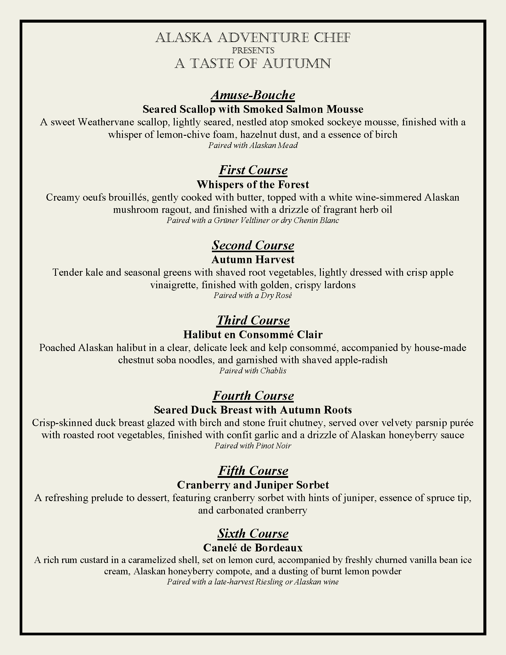 Alaska Adventure Chef Presents: A Taste of Autumn at Feather & Flour